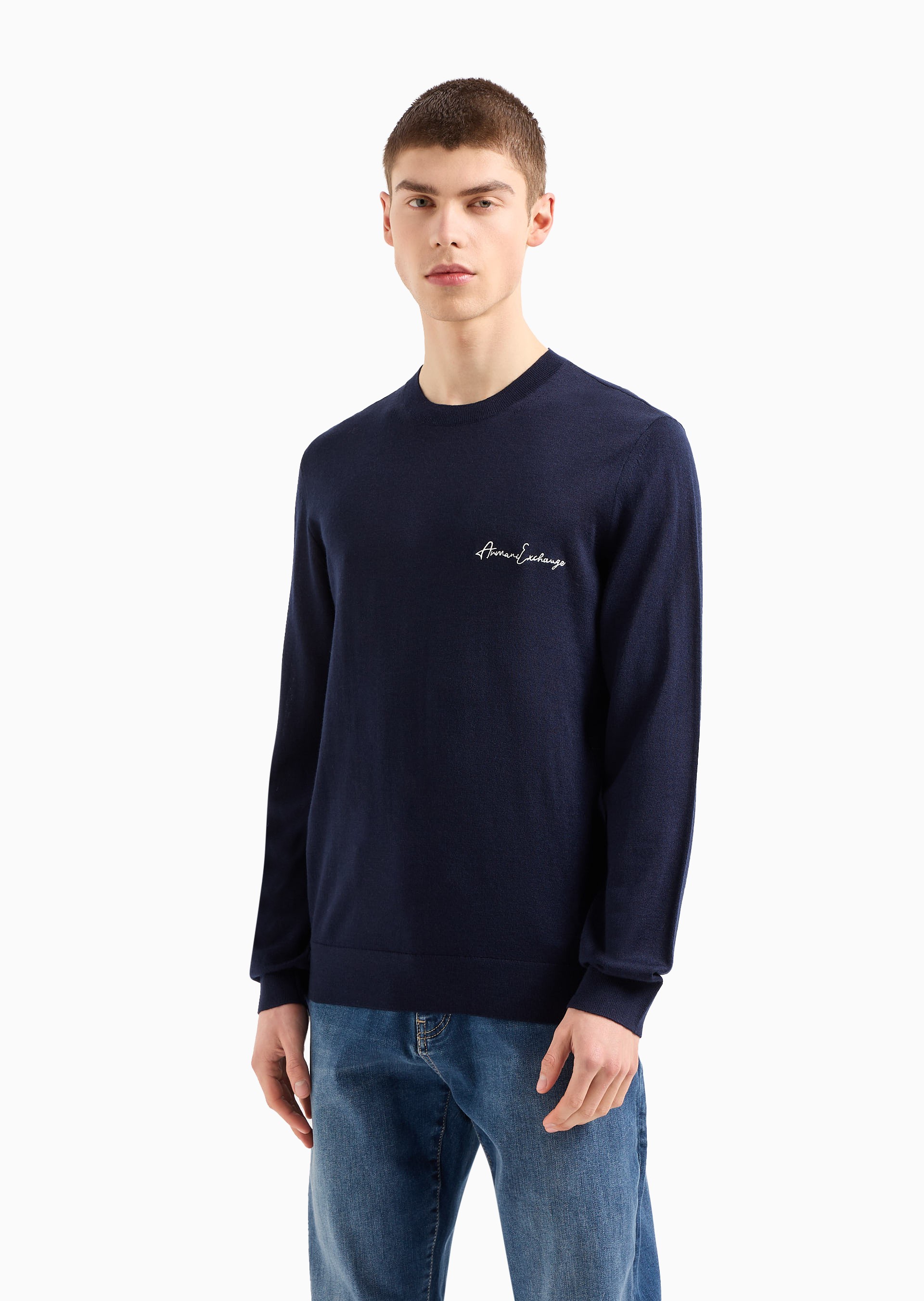Upgrade your wardrobe with this key look pullover from the Signature Collection. Crafted from a luxurious Merino wool mix, it features the signature logo script on the chest, combining warmth and style for a refined, modern appearance.