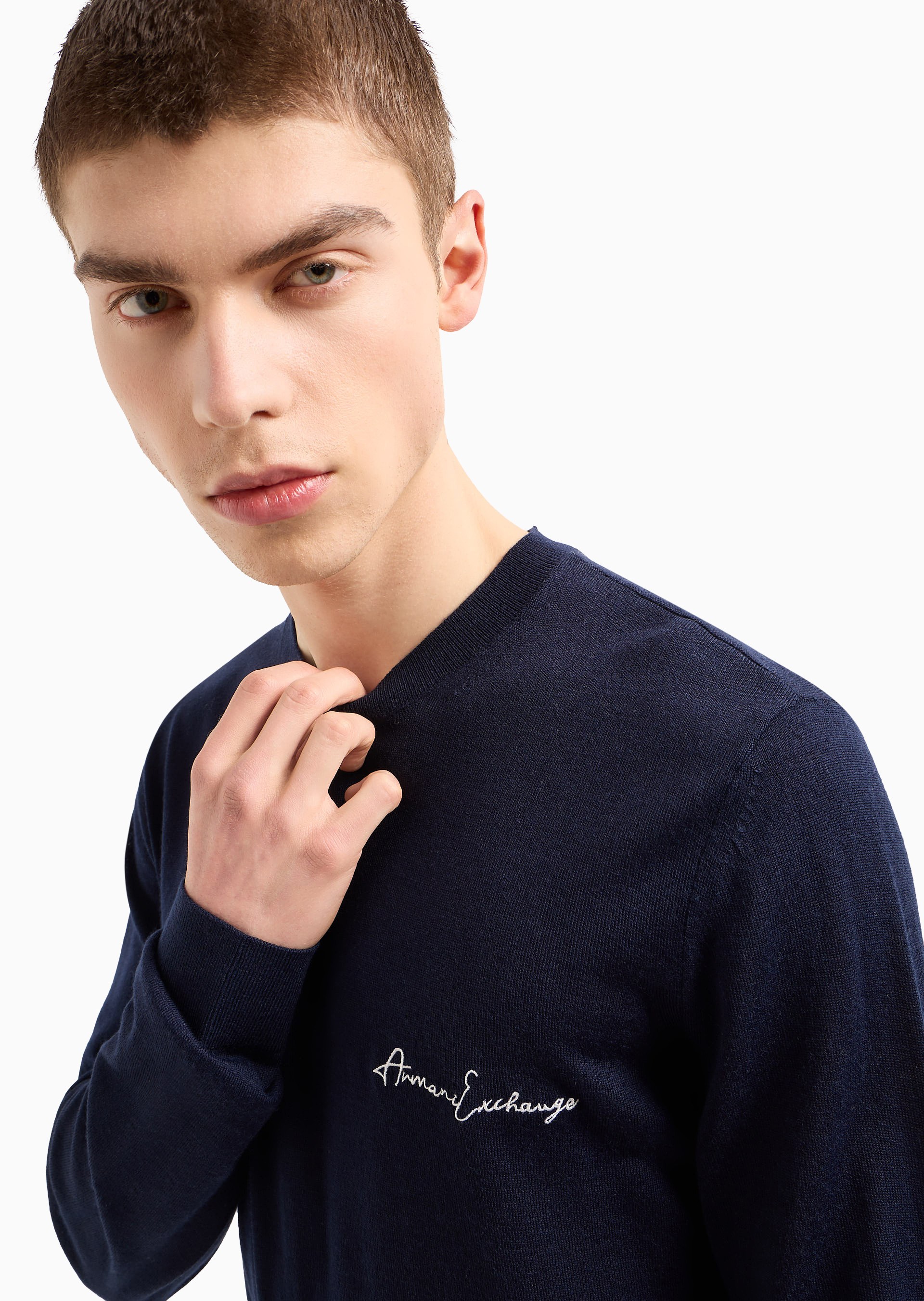 - Merino Wool Mix, Key Look, Signature Logo Script on Chest