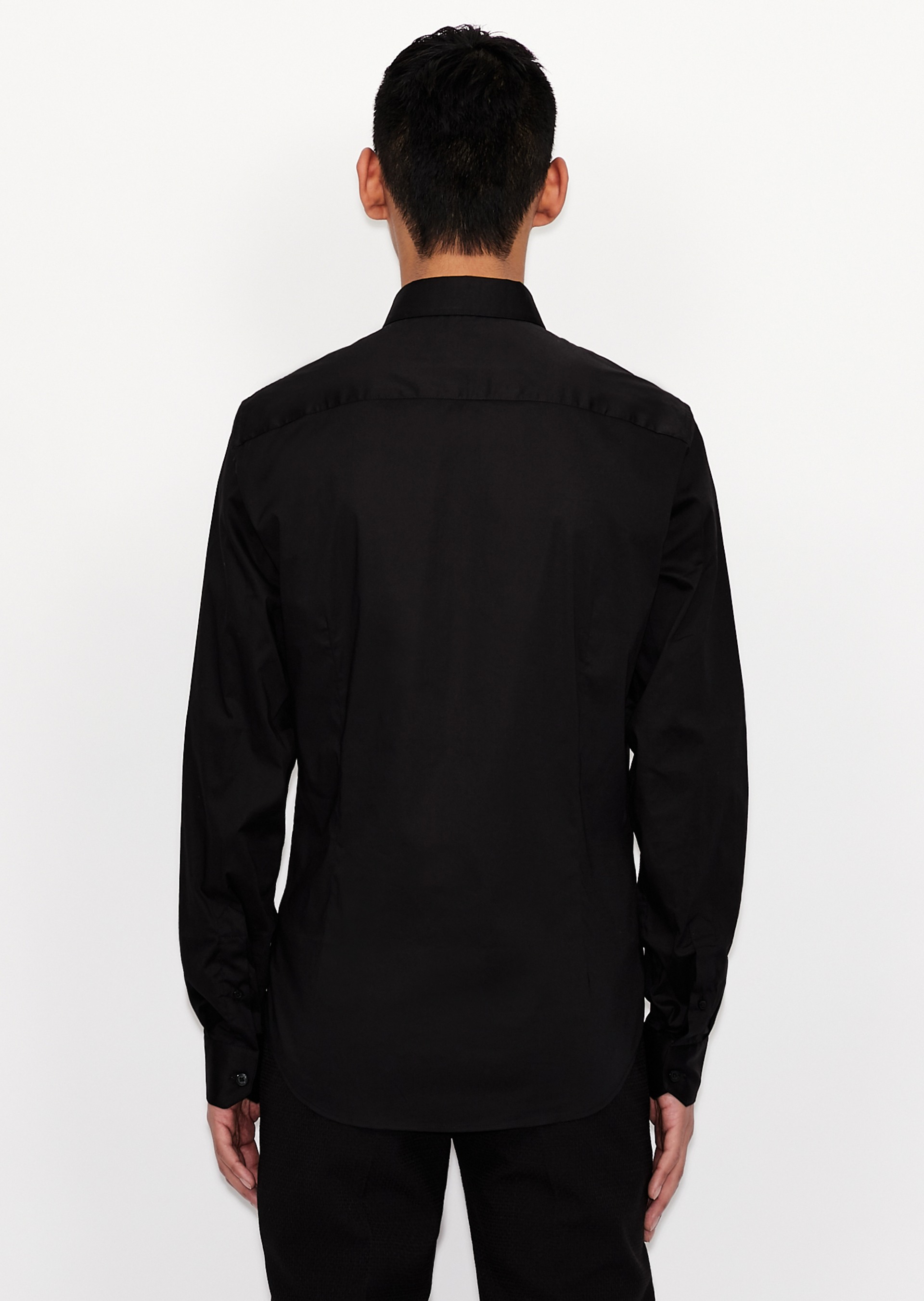 Elevate your look with this sleek shirt made from stretch poplin fabric, offering both comfort and a tailored fit. Featuring a mini logo on the chest, this shirt blends minimalist design with modern sophistication, perfect for any occasion.