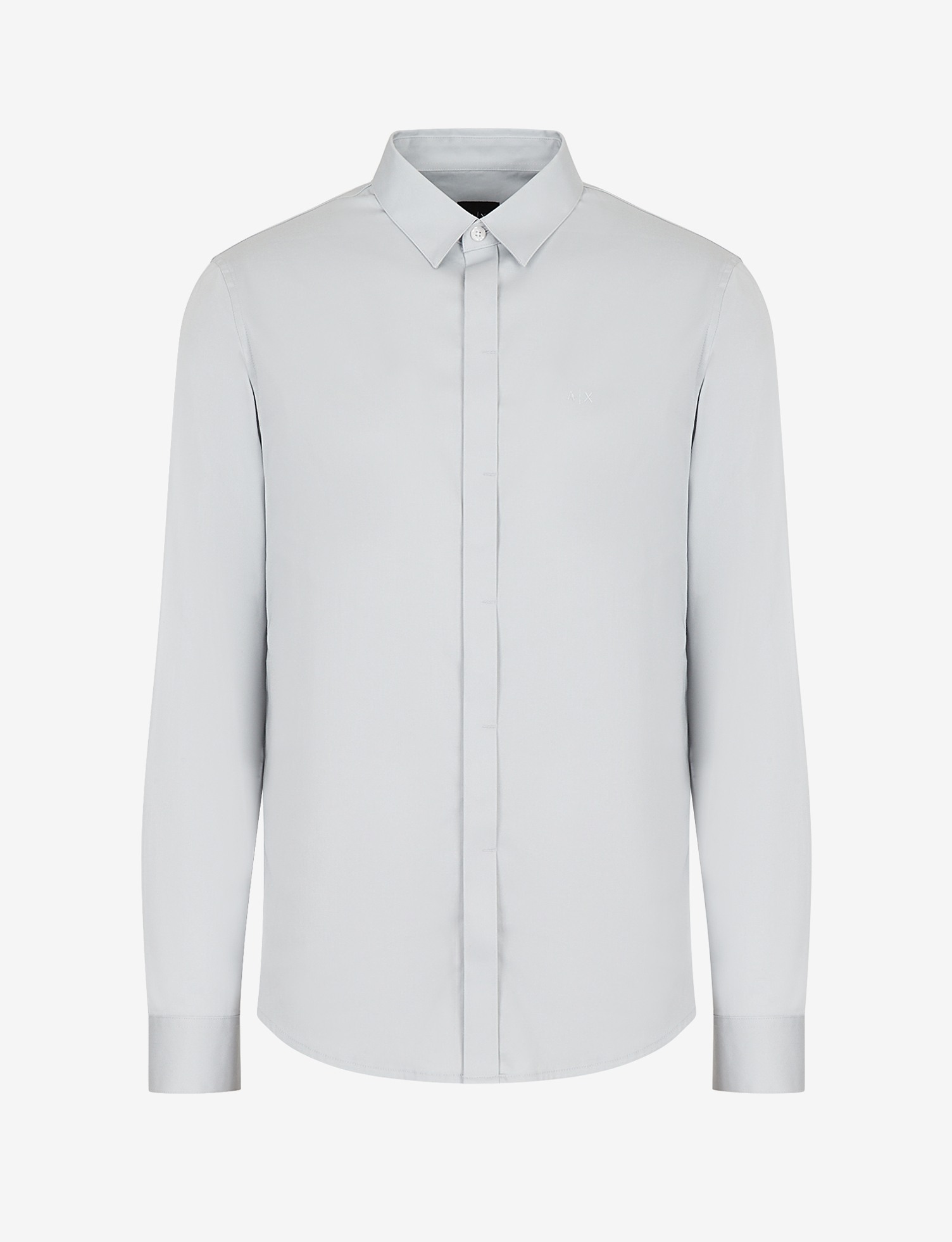 Solid Slim Fit Shirt with Concealed Placket & Embroidered Logo