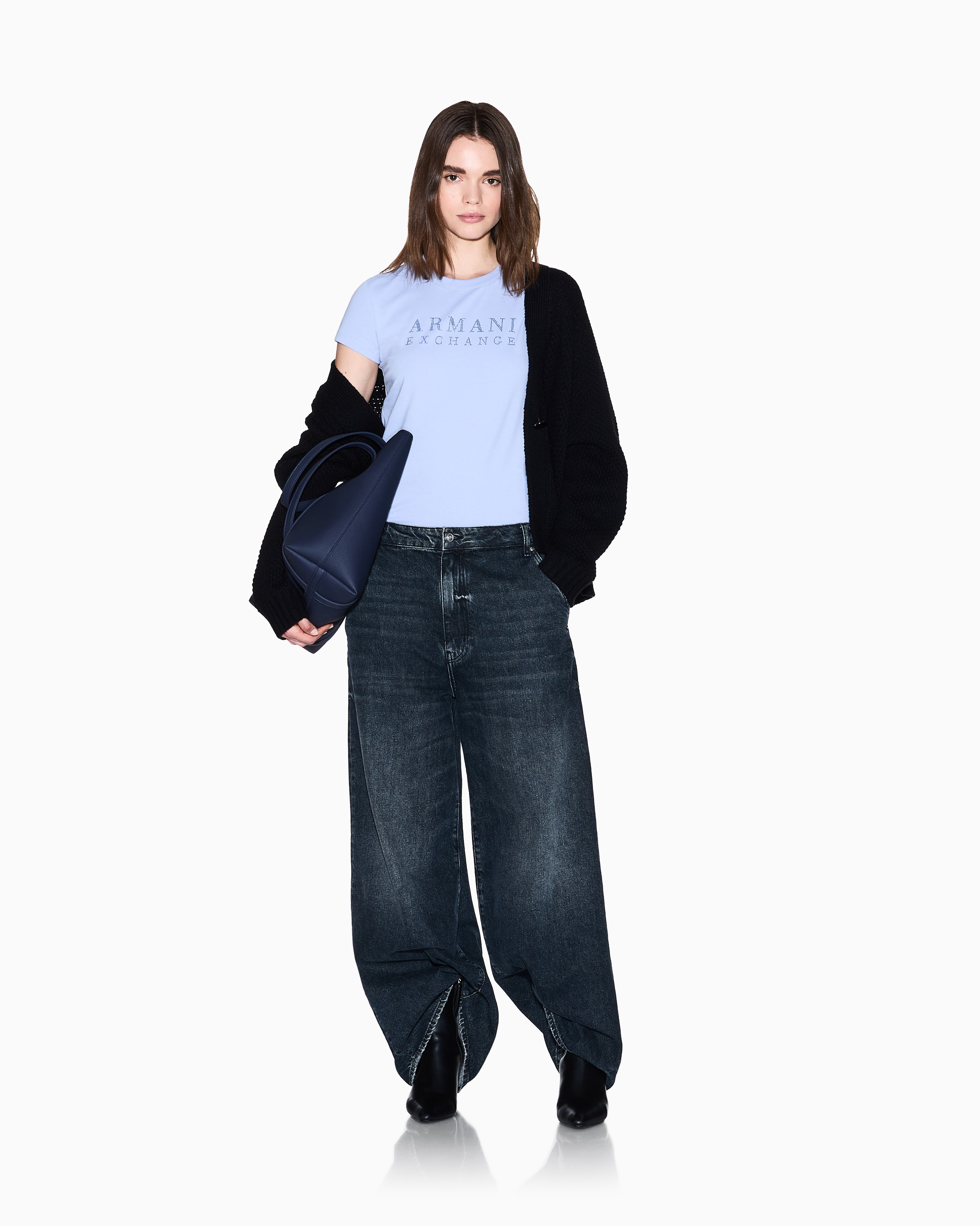 Women Blue Monogram Melody Slim Fit T-Shirts