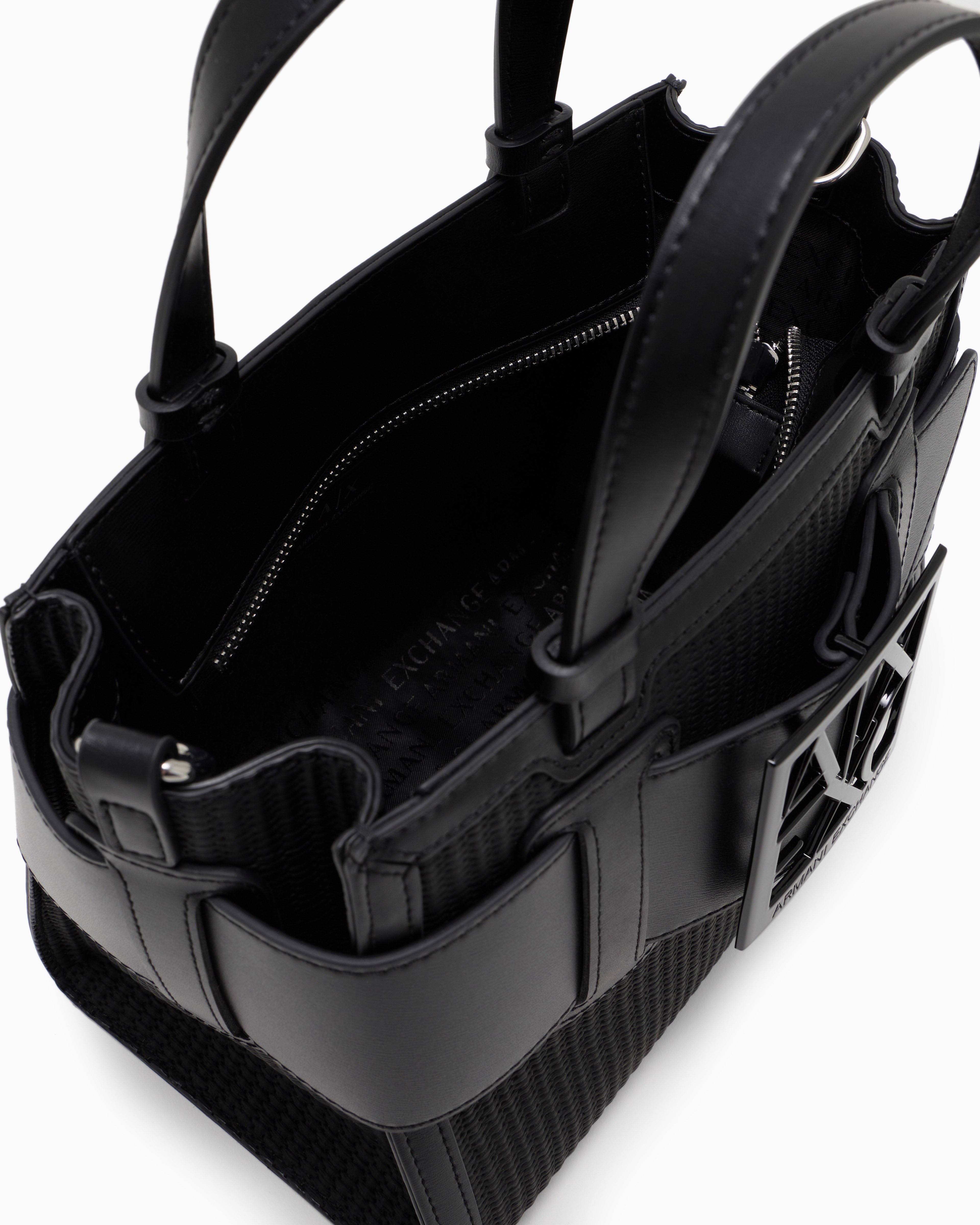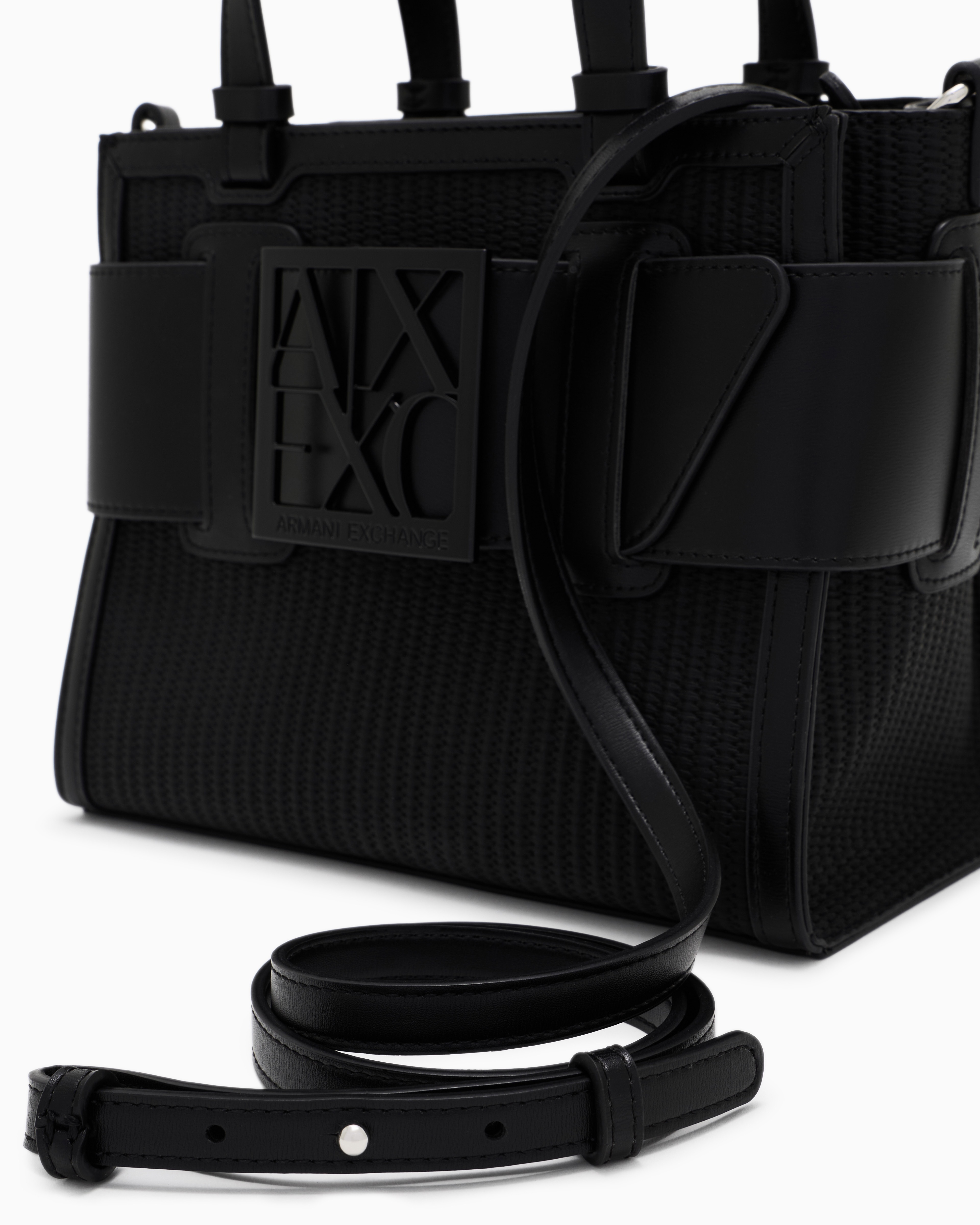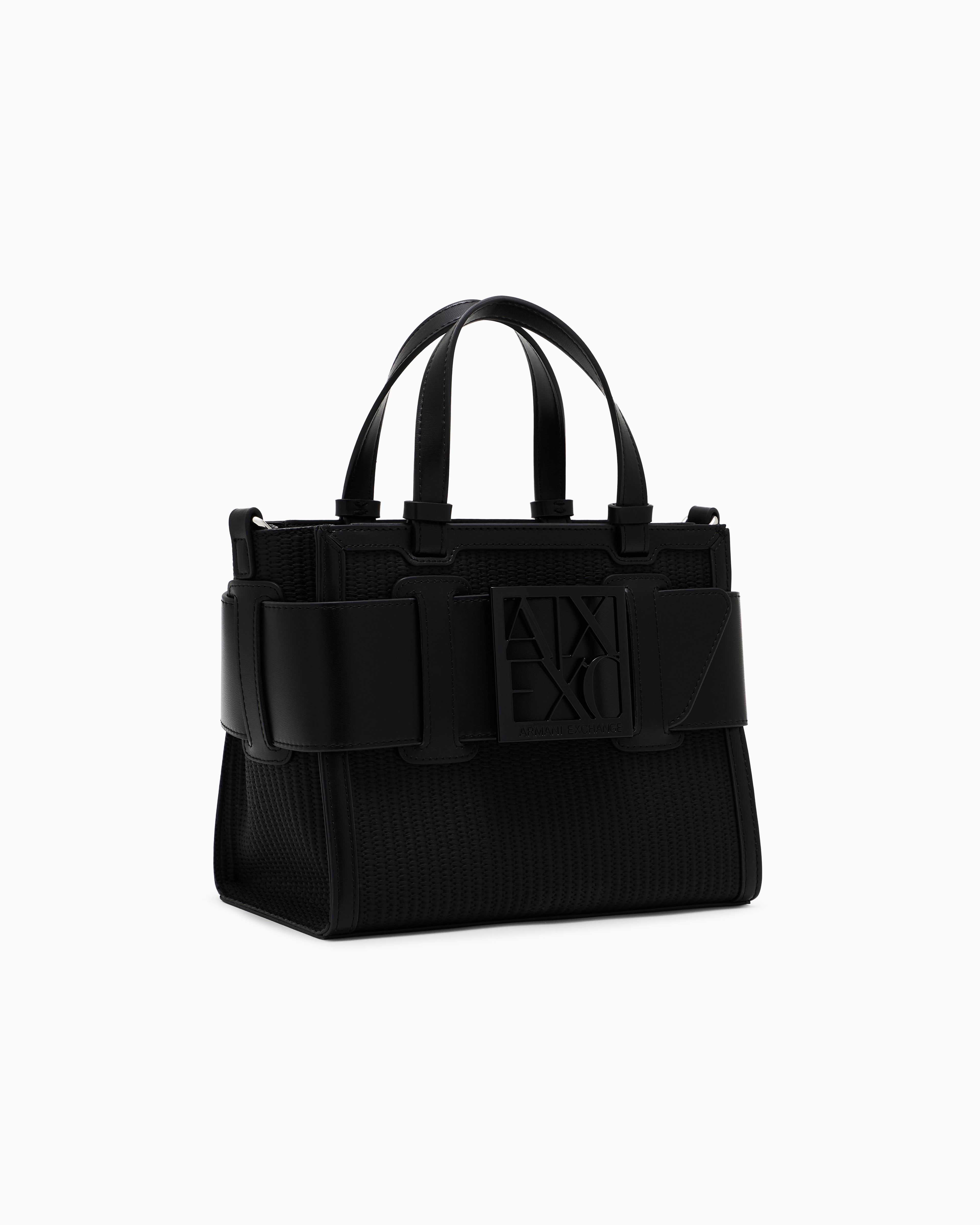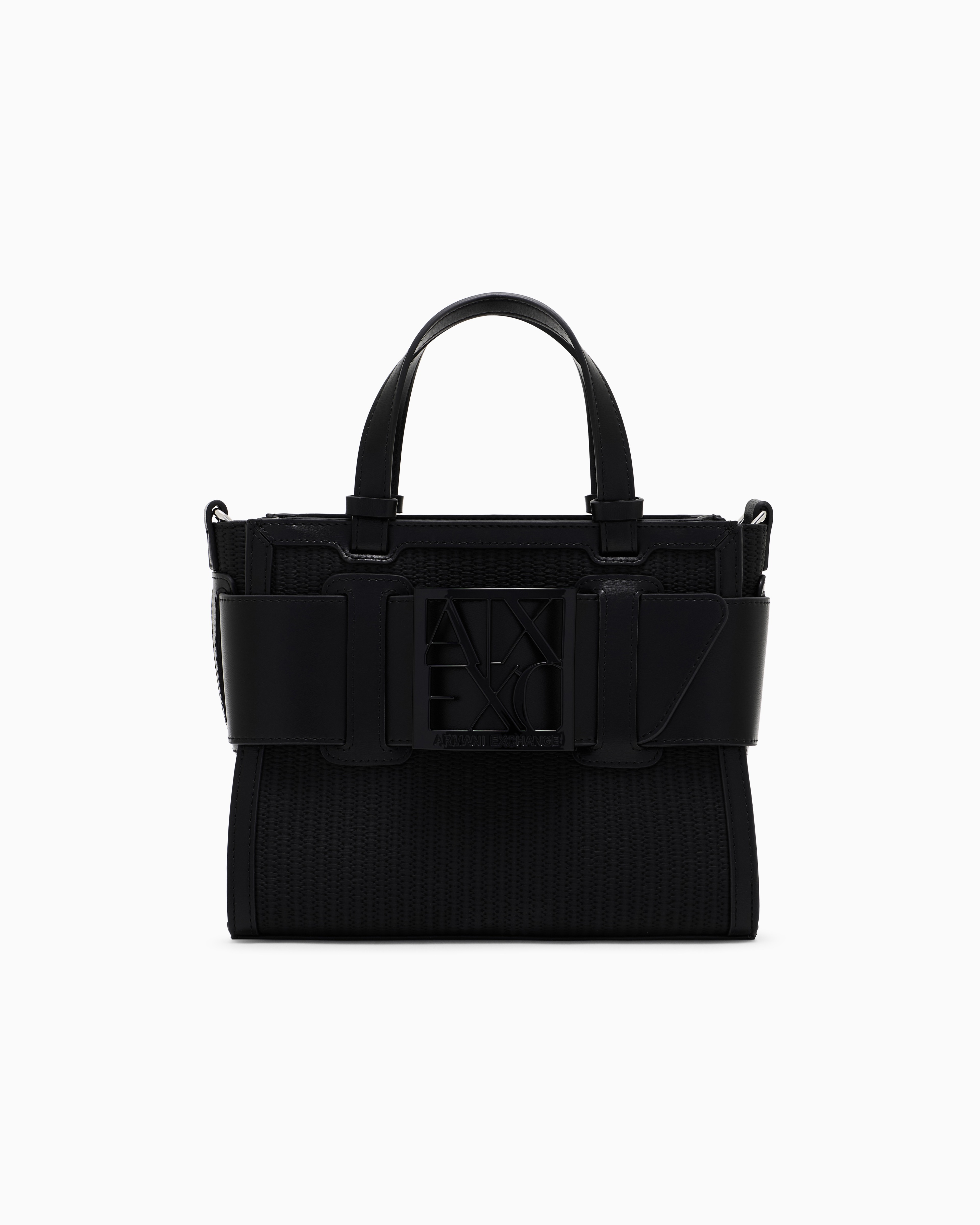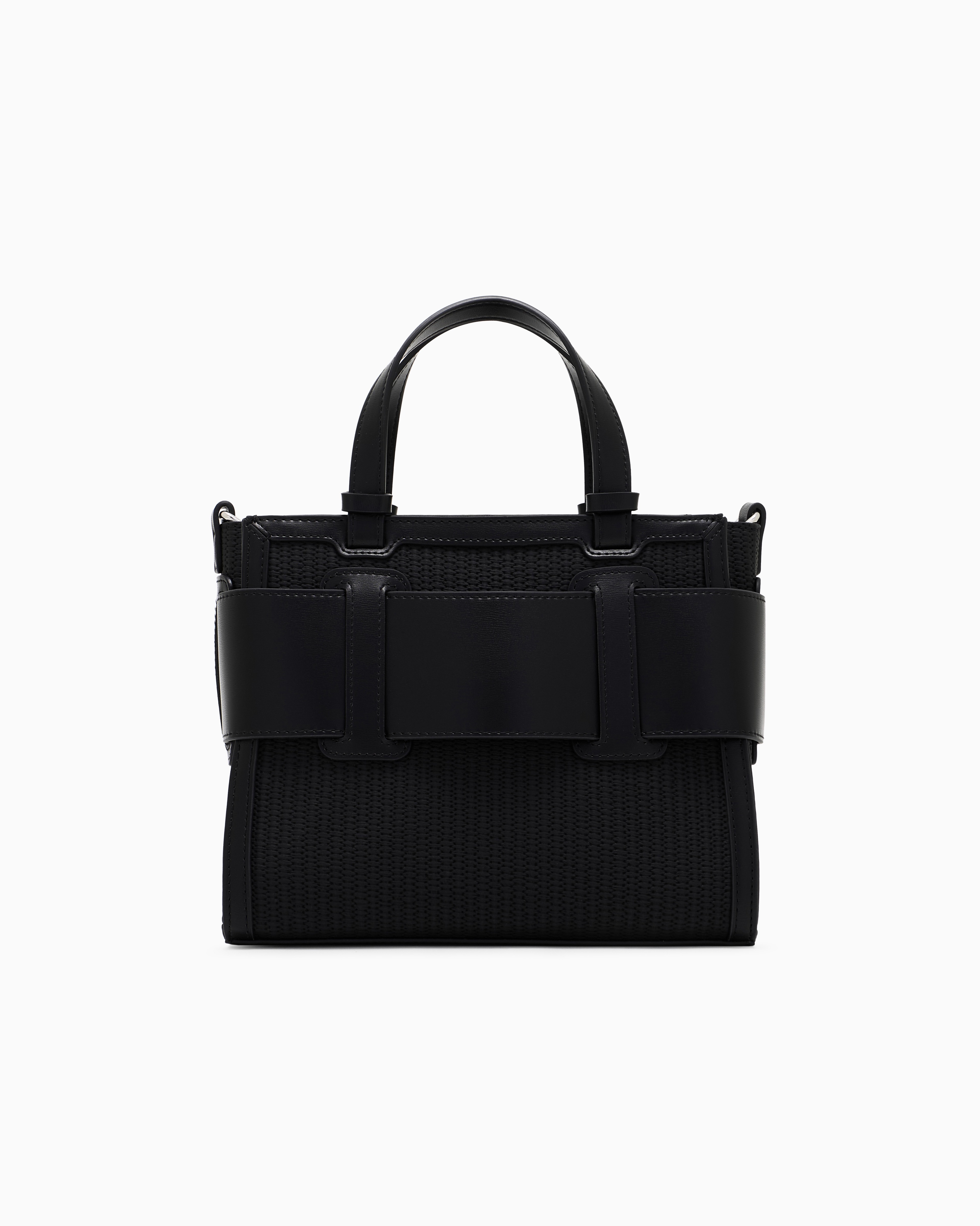 - Maxi buckle logo, perfect for versatile styling, finished down to the finest details. Zip at the top and removable shoulder straps, micro grain effect faux leather.