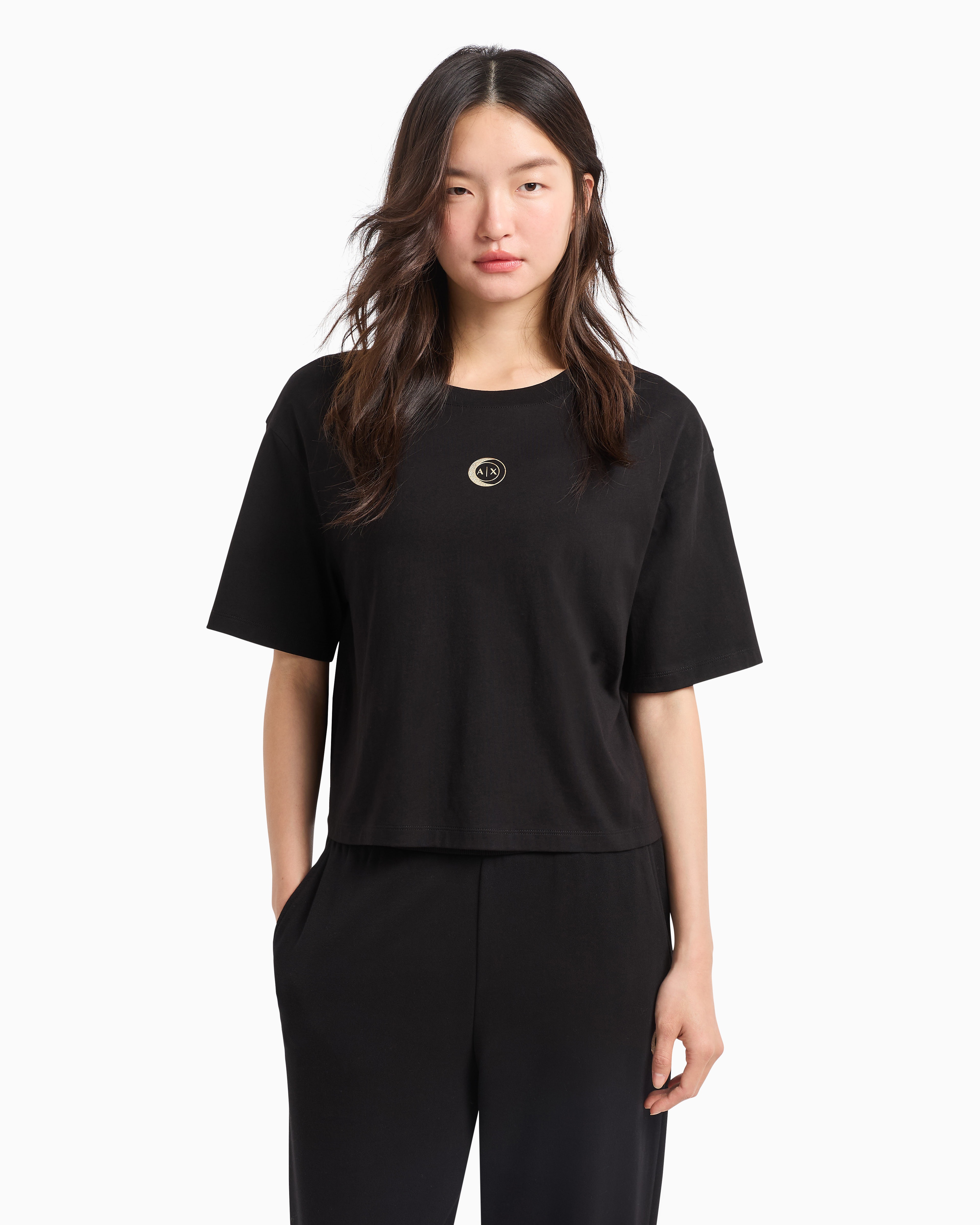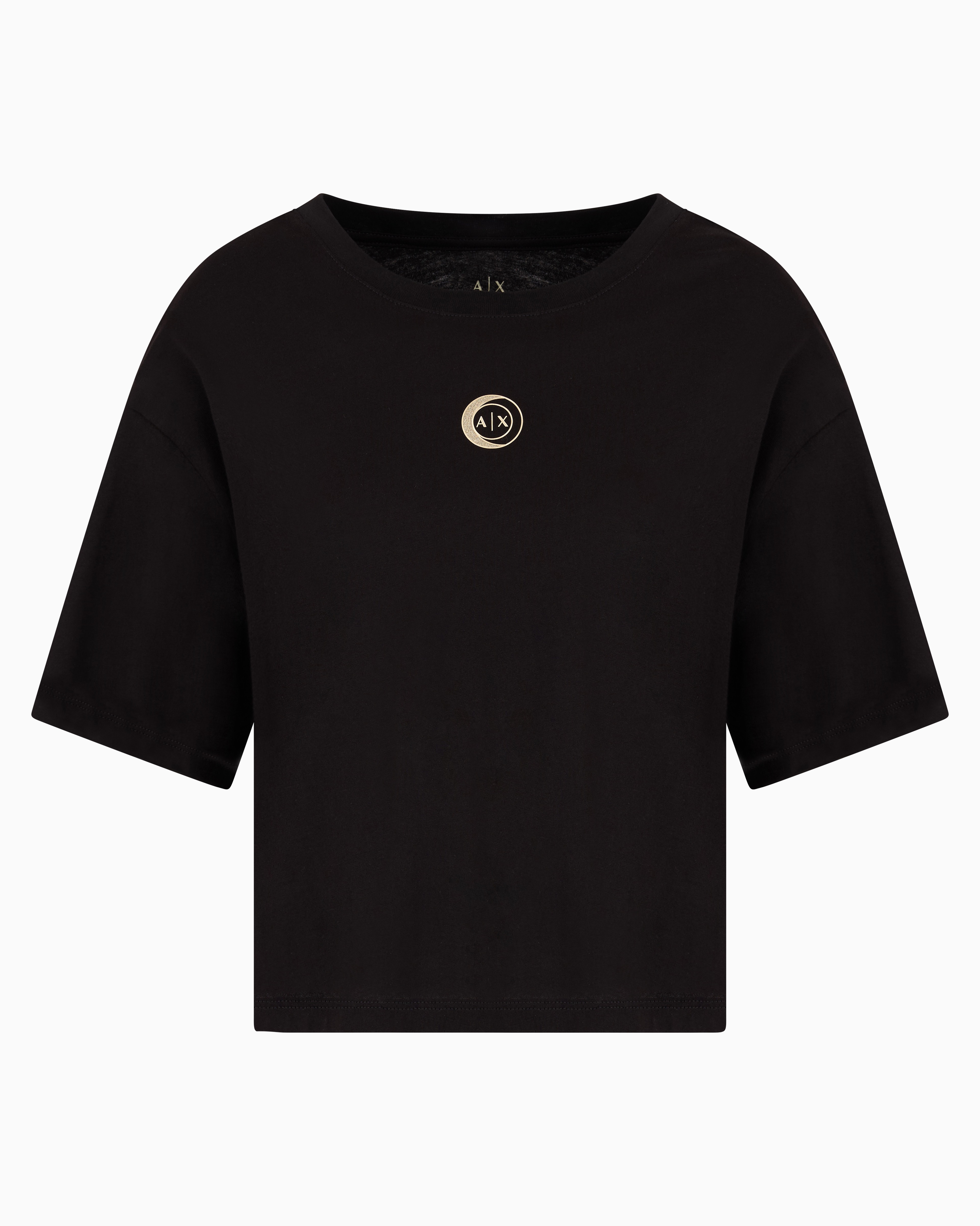 - Cotton jersey, Gold AX logo in center, cropped, capsule collection