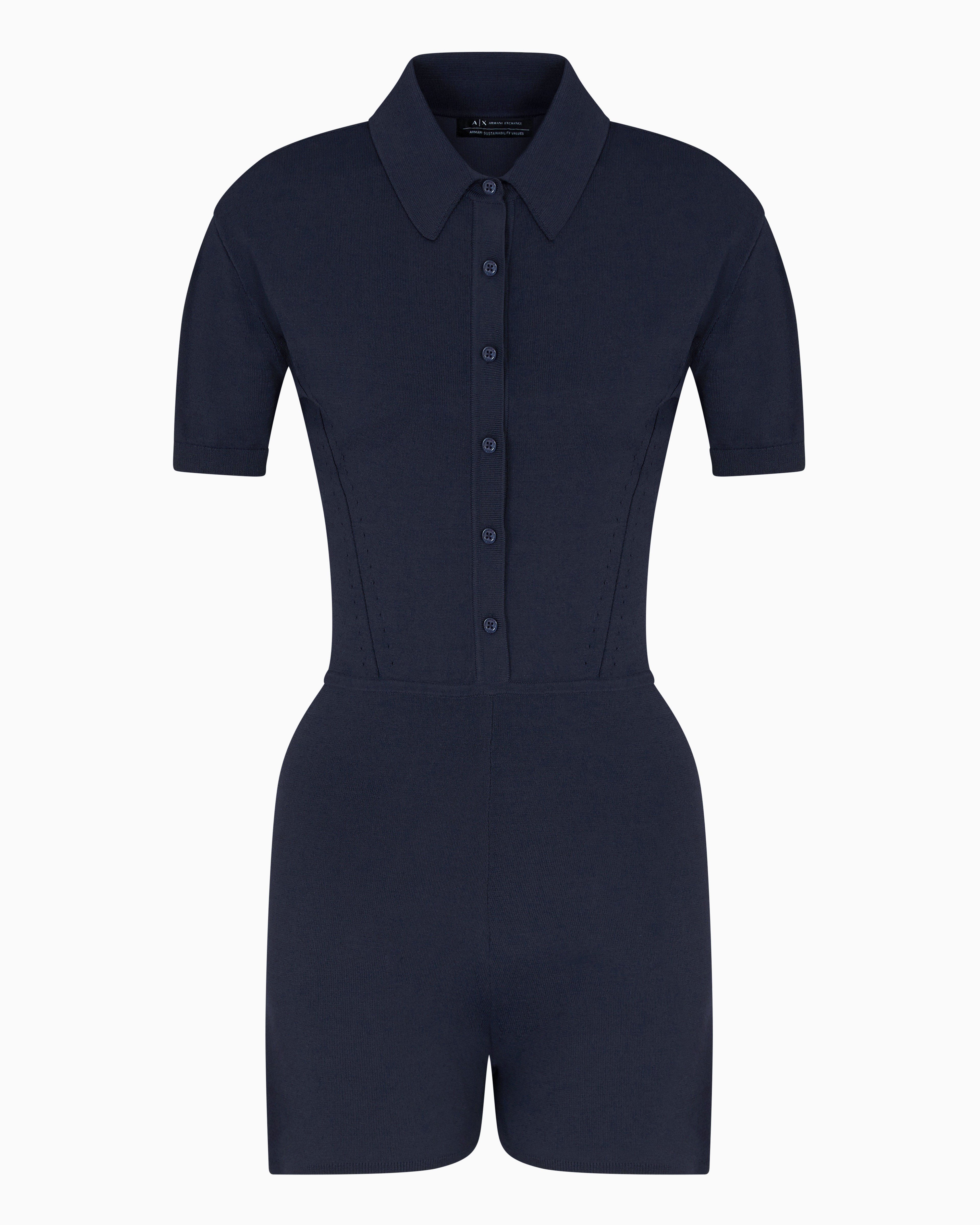 The Blue Edition jumpsuit is part of the cross-gender project, crafted from knitted recycled viscose nylon for a sustainable and comfortable fit. Featuring a chemisier cut with a button closure, it offers a stylish and modern silhouette. Pointelle details add texture and interest, while the logo patch on the back neck completes the look with a signature touch. Perfect for a versatile, fashion-forward style.