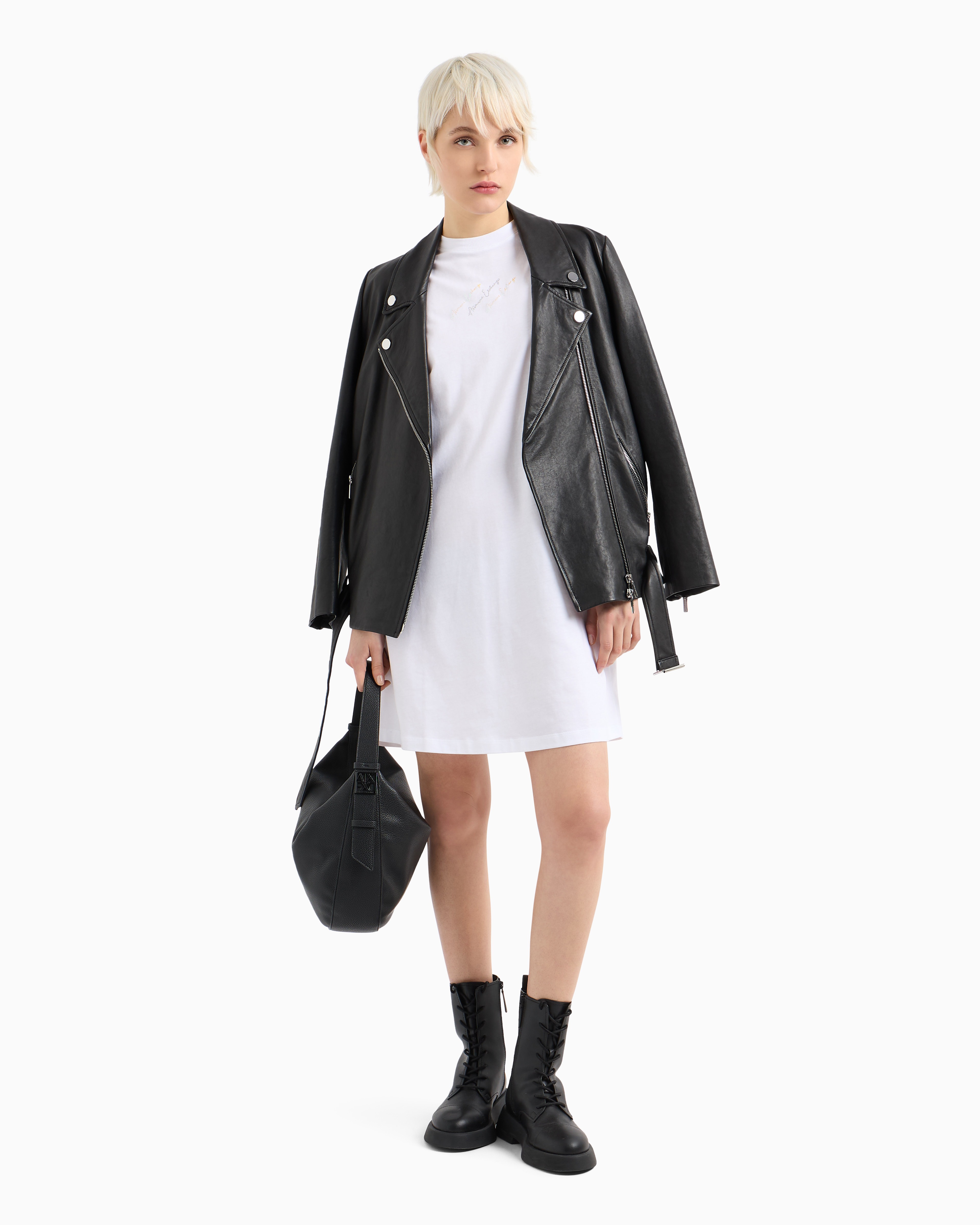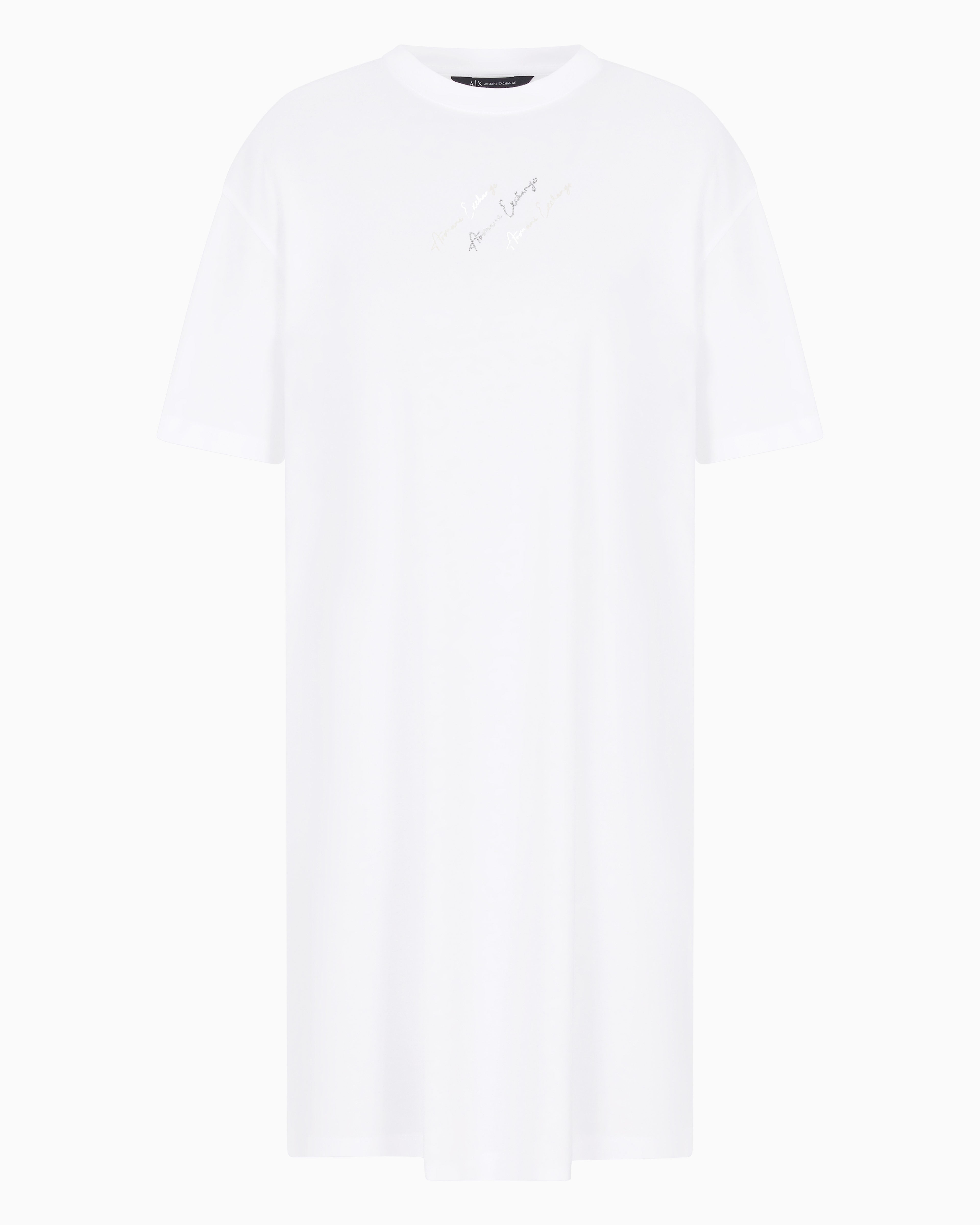 The Mini Logo Signature Bling dress is crafted from soft cotton jersey, offering a comfortable, regular-length fit. With its eye-catching logo on the chest, this dress adds a touch of glam and contemporary style. Perfect for casual outings, it’s a chic and playful piece that stands out effortlessly.