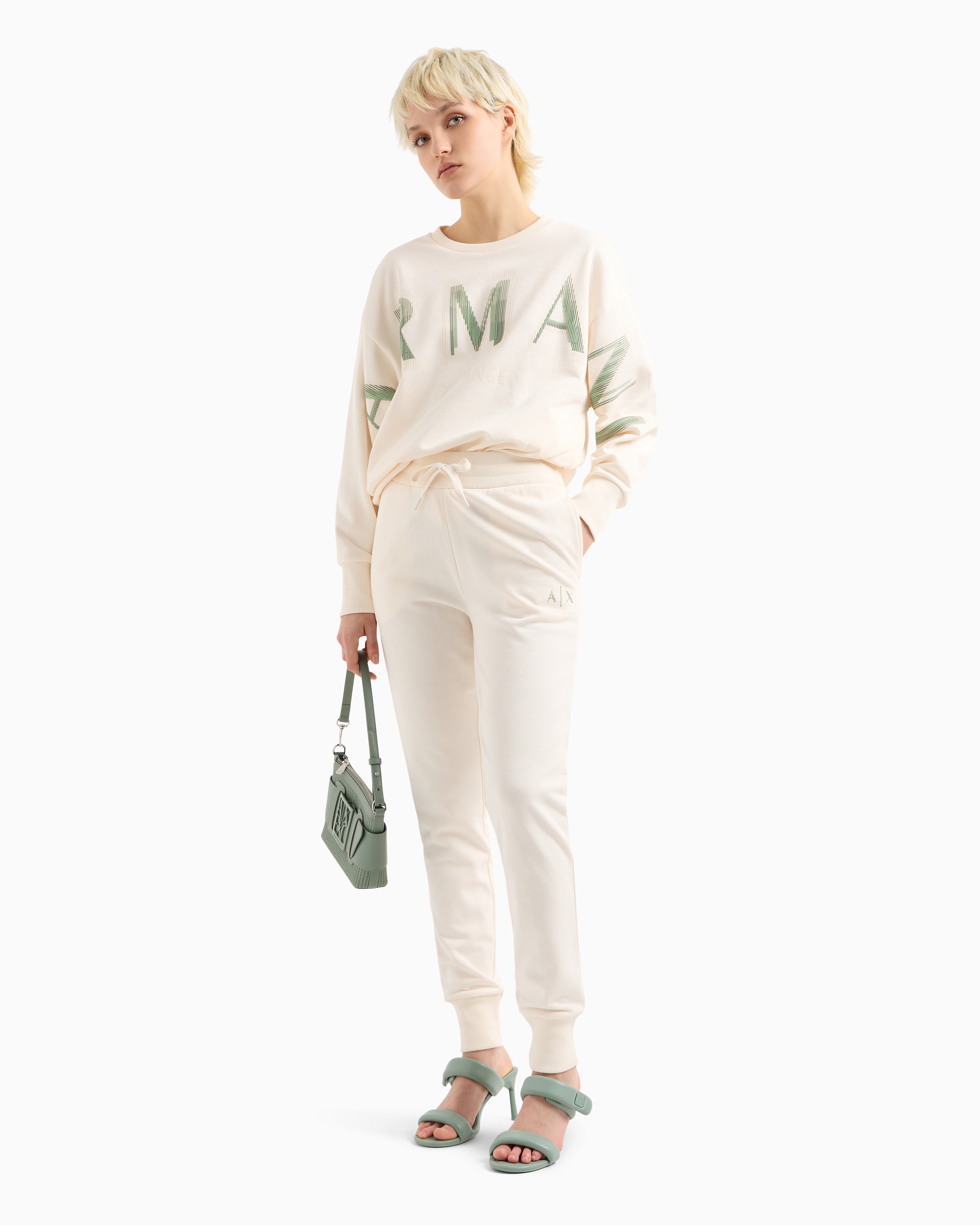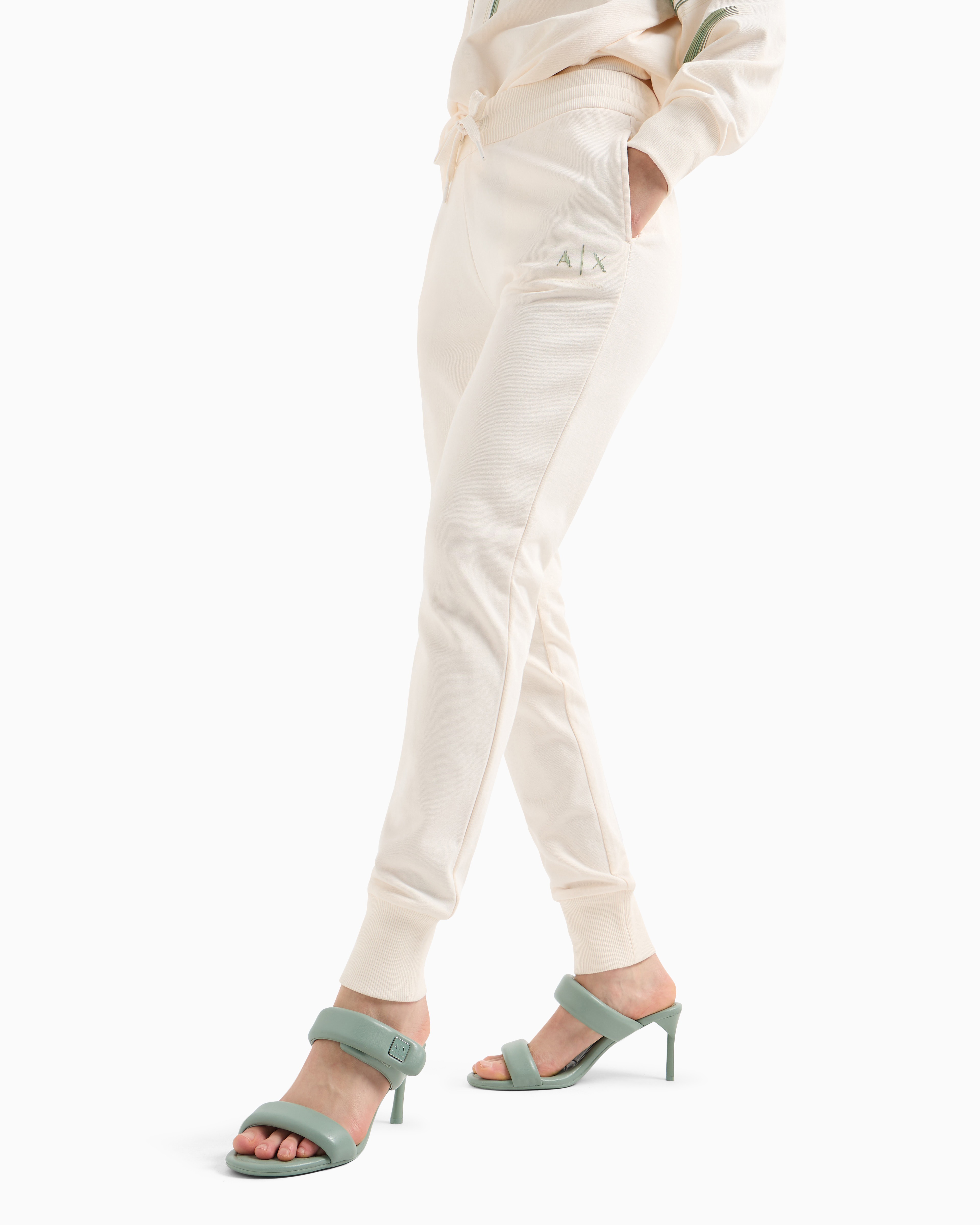 - Jogger pants, elastic waistband with drawstrings, welt pockets, logo print on thigh, ribbed cuffs, organic cotton french terry, nature's symphony